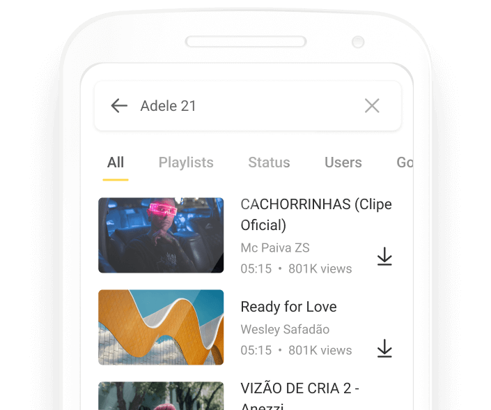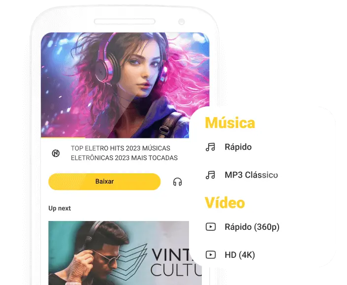 Baixe vídeos e músicas em HD e os aproveite offline.