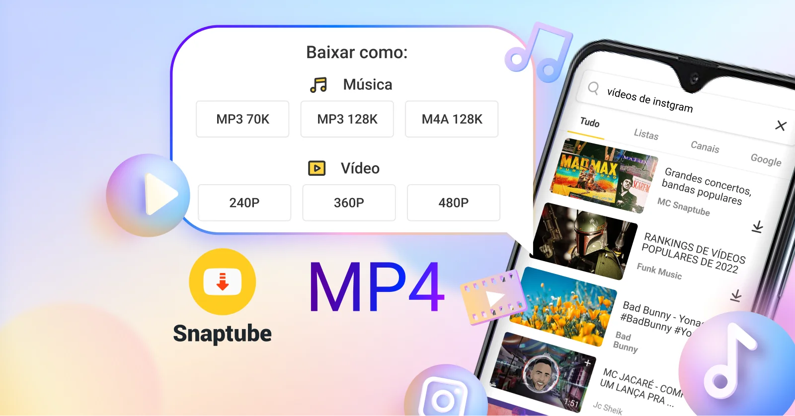 Baixar com Snaptube MP3 música de forma rápida e gratuita, com som de alta qualidade, vários formatos e para ouvir sem internet.